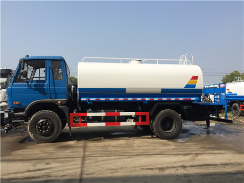 不上牌12方東風灑水車底盤采用程力生產平頭排半完全可翻轉駕駛室,國三玉動160馬力,3950mm軸距,五檔變速箱帶副變速,2.8T前橋,7.6T后橋,方向助力,9.00-20輪胎, 前沖后灑,后工作平臺帶高炮,右位花灑,側噴。