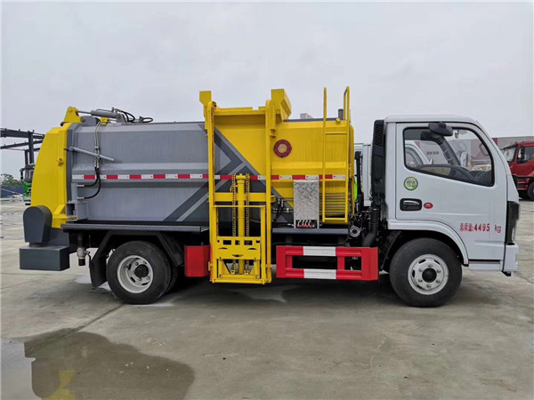 作業控制盒分別安裝在駕駛室內和車尾,駕駛室內的作業控制盒可控制推擠卸料和選擇操作模式(如自動或手動),車尾的作業控制盒則控制壓填機構和翻桶機構的作業,使用操作十分方便。特別是在垃圾填埋場,作業人員無須下車即可完成卸料和污水排放。