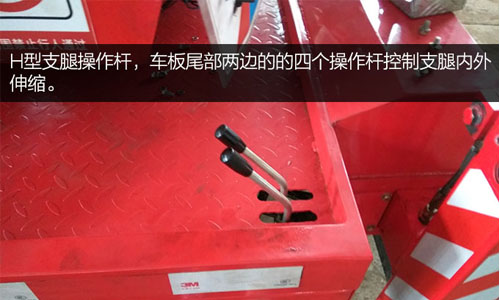 H型支腿操作桿,車板尾部兩邊的的四個操作桿控制支腿內外伸縮。