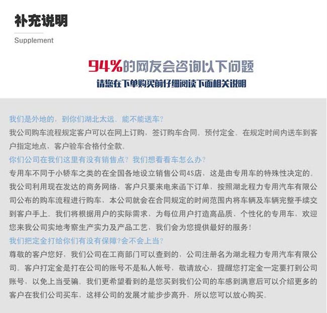 整車出具:正規底盤合格證、整車合格證、全國統一機動車上戶發票、隨車工具,車輛保修手冊、使用說明書、全國服務站名錄等。讓您上戶無優,方便、快捷、省心!